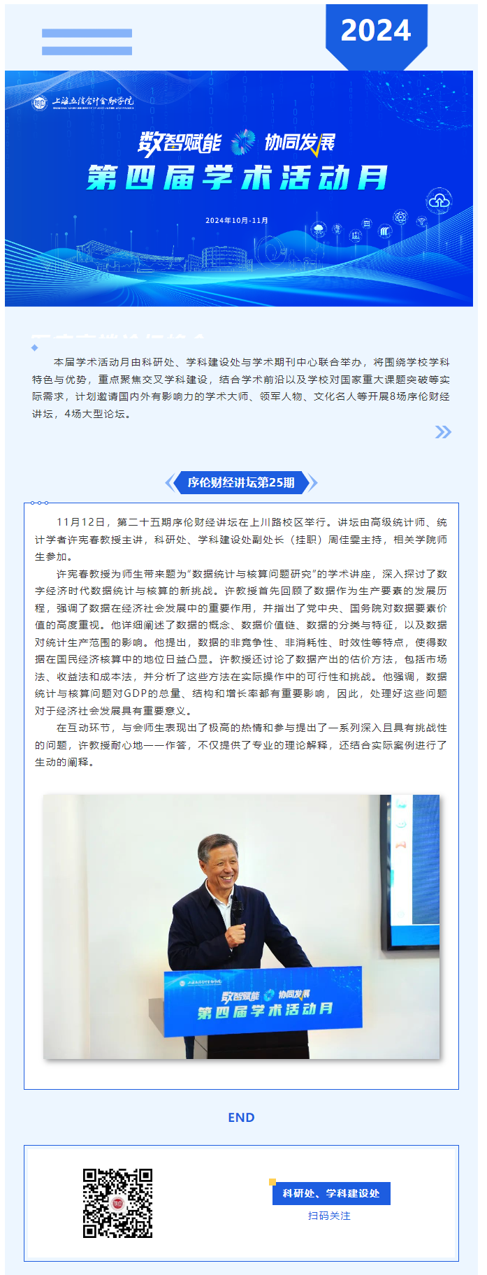 【学习贯彻党的二十大精神】序伦财经讲坛“数字经济增加值测算问题研究”报告会举行
