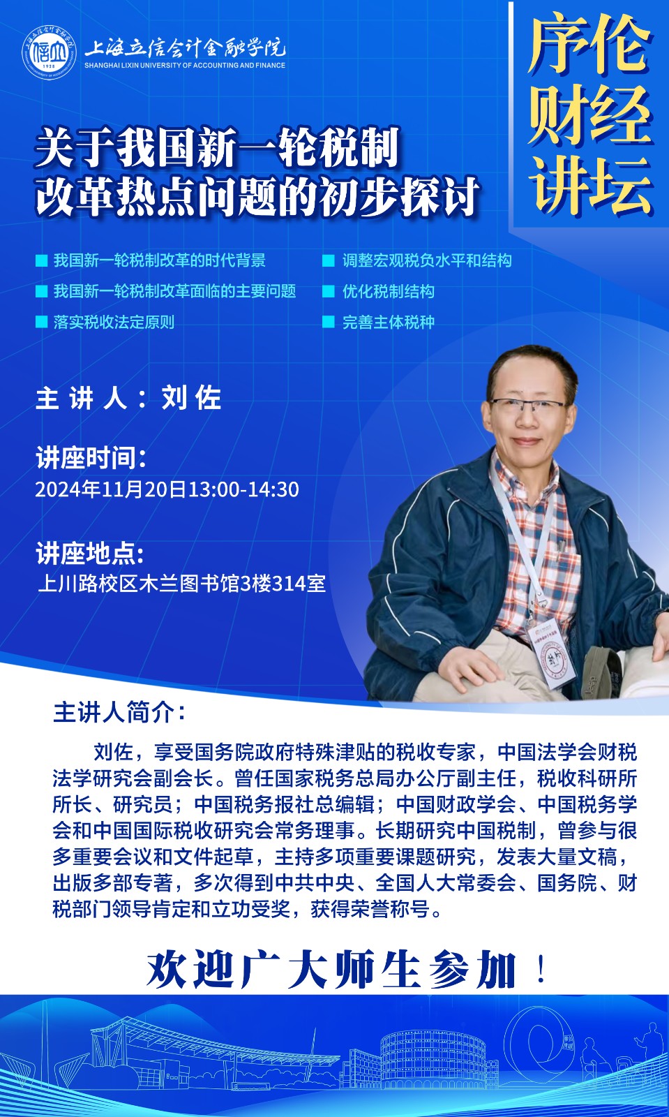 【序伦财经讲坛第28期】刘佐:关于我国新一轮税制改革热点问题的初步探讨
